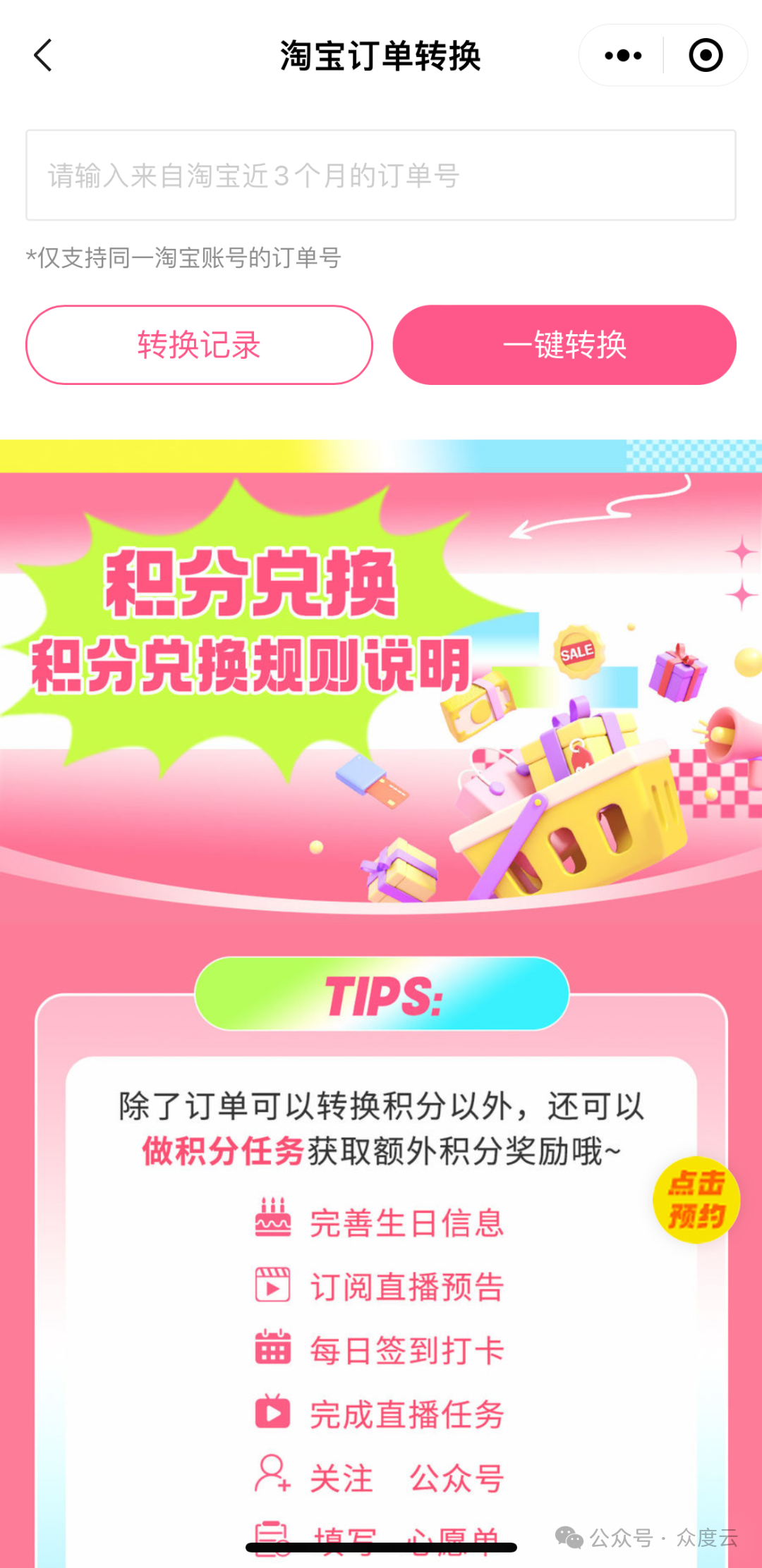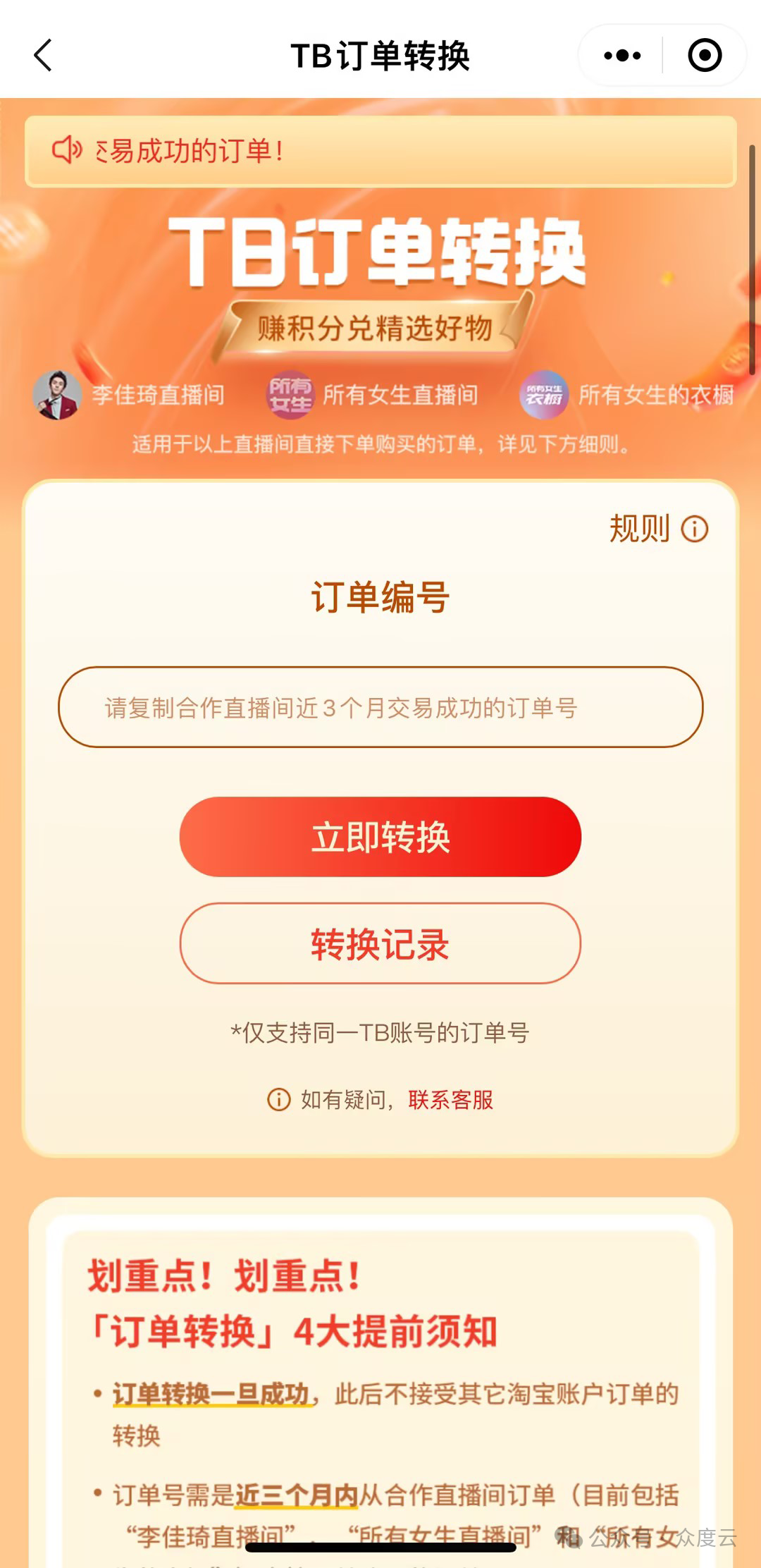 众所周知,公域流量是如今企业建立用户资产的重要途径,而私域流量则是企业提高用户粘性的关键,打通企业的公域和私域已经成为众多电商商家的刚性需求。 淘宝头部主播“李某琦”、“薇某”2021年就开始尝试,淘宝直播间成交客户,在微信小程序端输入淘宝订单号,即可获得小程序商城积分,积分可抵现使用。 以李某琦为例,大主播的公私域联动玩法是:直播间买家被引导关注公众号号、进入小程序兑换积分,实现了私域留存;公众号群发图文,做直播间新品预告,通知买家准时进入直播间参加活动。